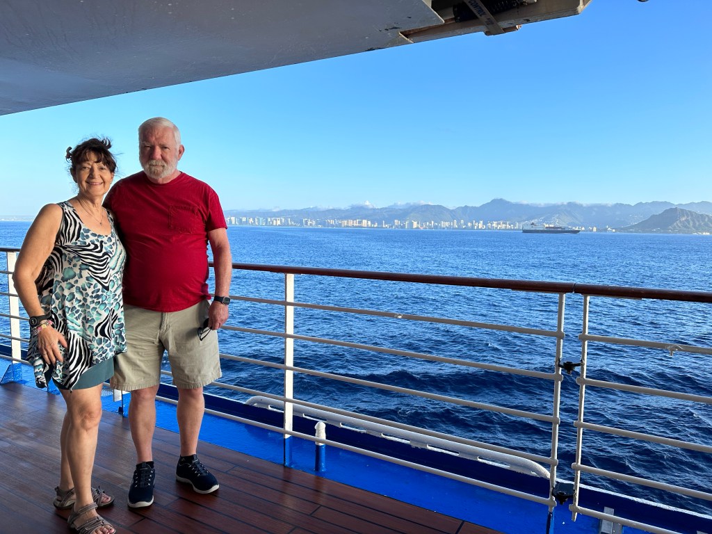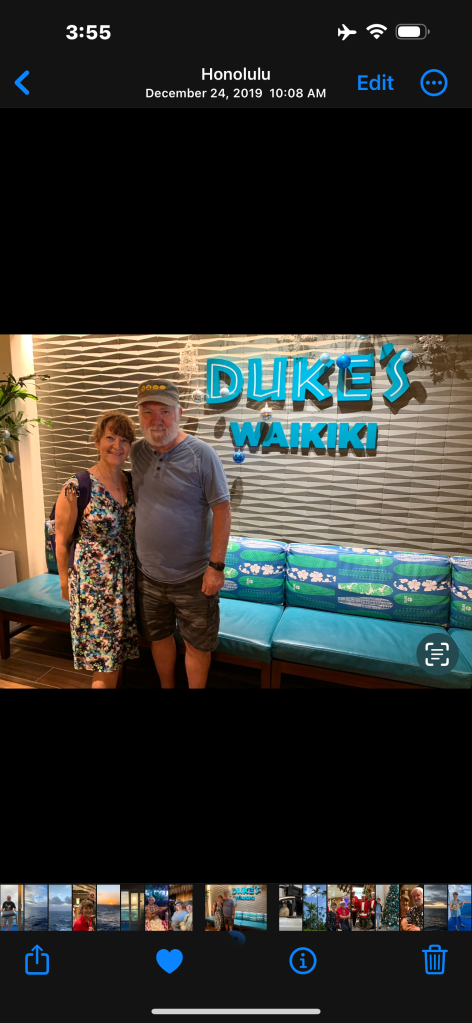 Honolulu!!! Well we’ve all been here before! Took a limo/cab to pick up supplies! Then back onboard! Our normal routine is cab/uber to Waikiki Beach then everyone else hangs out Dukes bar while I go for a swim!!! Join them at the bar afterwards. 😉