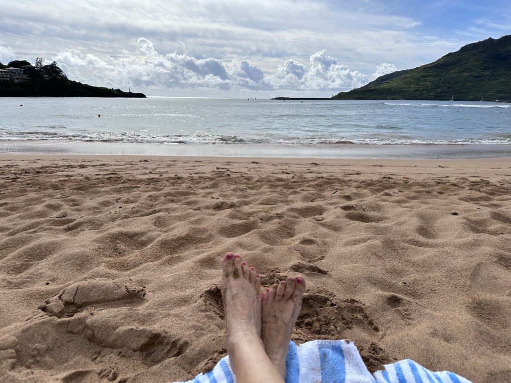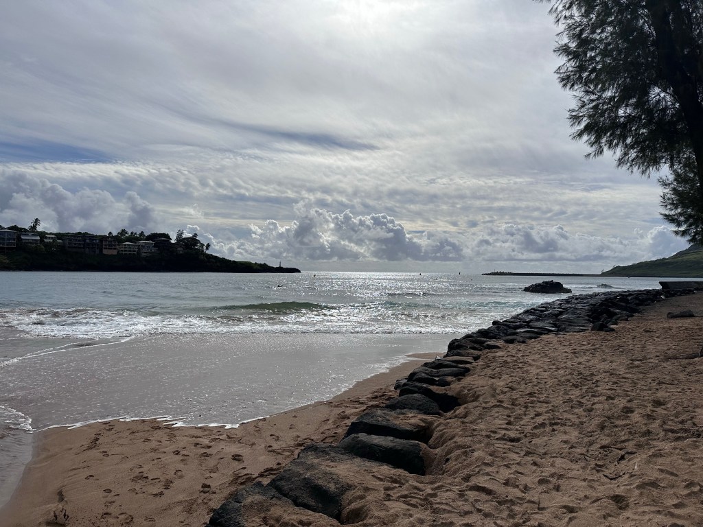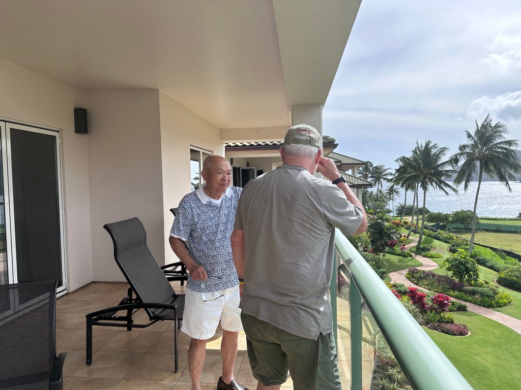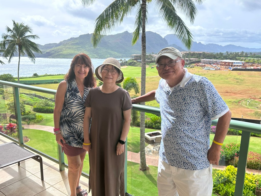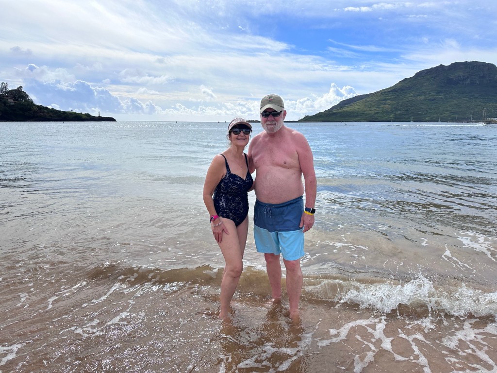 Island of Kauai, Barry & I went to the beach! We met up cruise friends, Meei & CL. They showed us all around. Private resort beach, koi fish, elevator to lookout of harbor, lighthouse, and golf course.