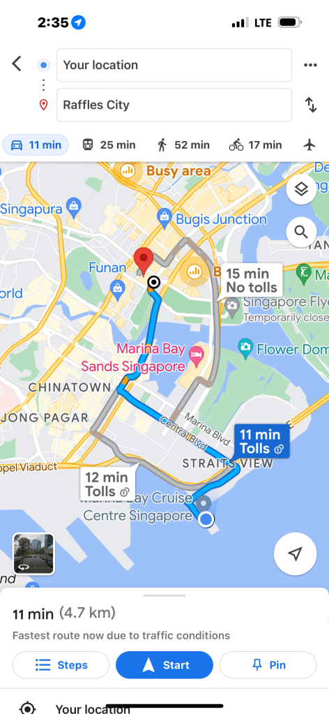 We also visited the lobby of the Fairmont Hotel. The four of us stayed here pre-cruise in 2018. Good memories. We were here for several days, so we had seen the sights of Singapore already. It’s so clean and interesting from every angle. Singapore is among my favorite places. You should go!