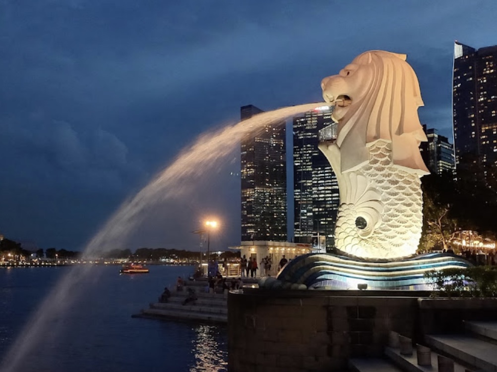 The symbol of Singapore is a creature known as a Merlion, a breast that’s half fish and half lion.