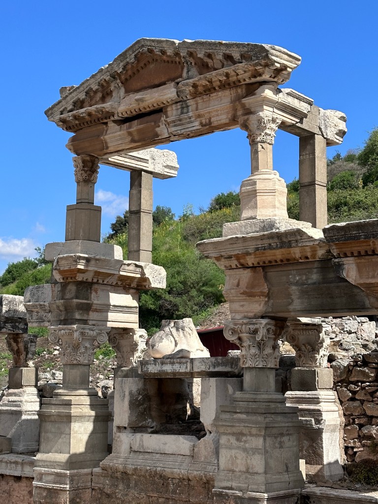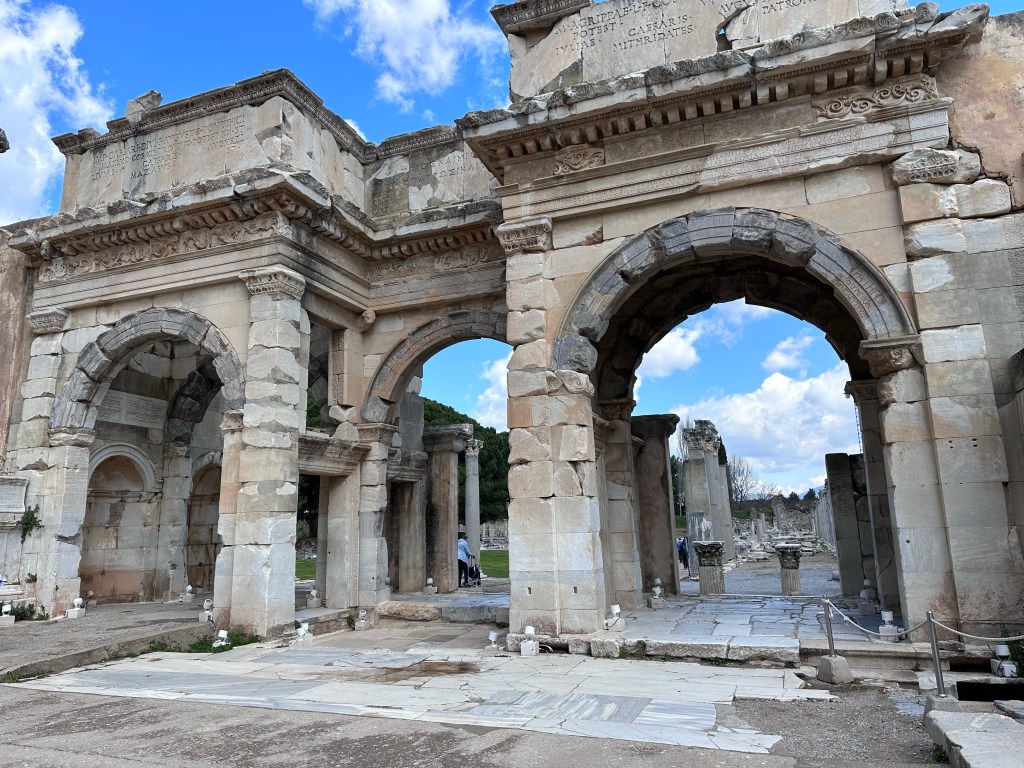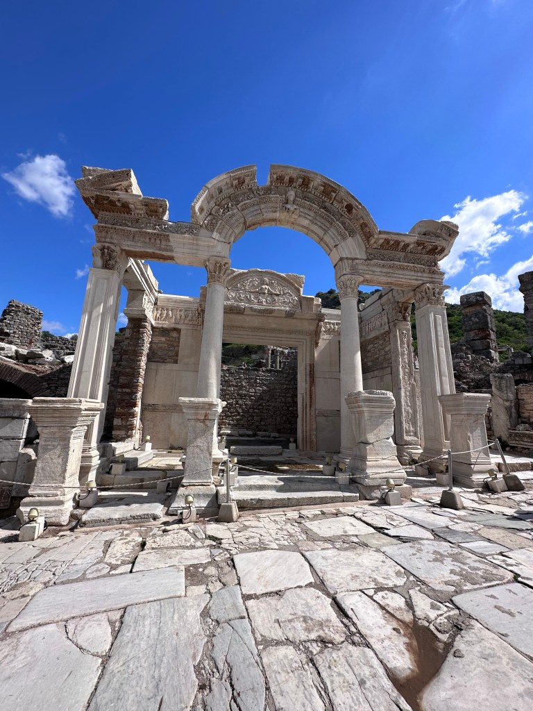 The major sites are the Great Theatre, the Roman Imperial Temple of Hadrian, the Fountain of Trajan, the Odeum, and the Celsus Library.