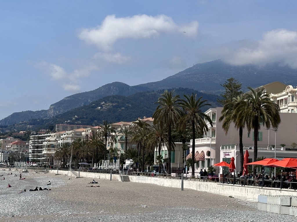 The beach town of Menton looks similar to Santa Monica, California with gravel instead of sand. Oh, and except for the sea being lovely shades of blue here! Yes, that is a 10 year old laying on the “beach.”