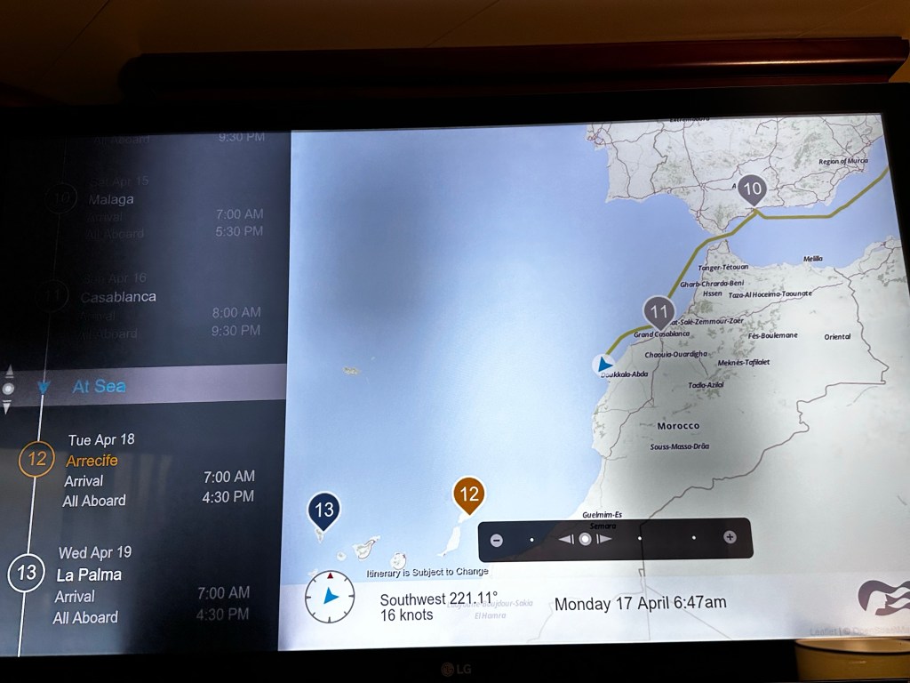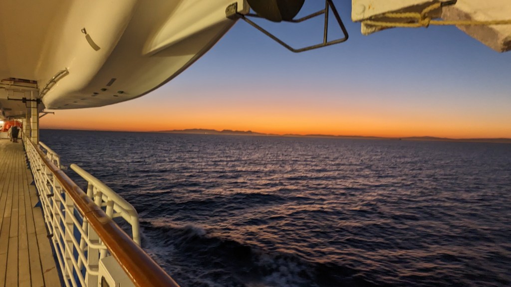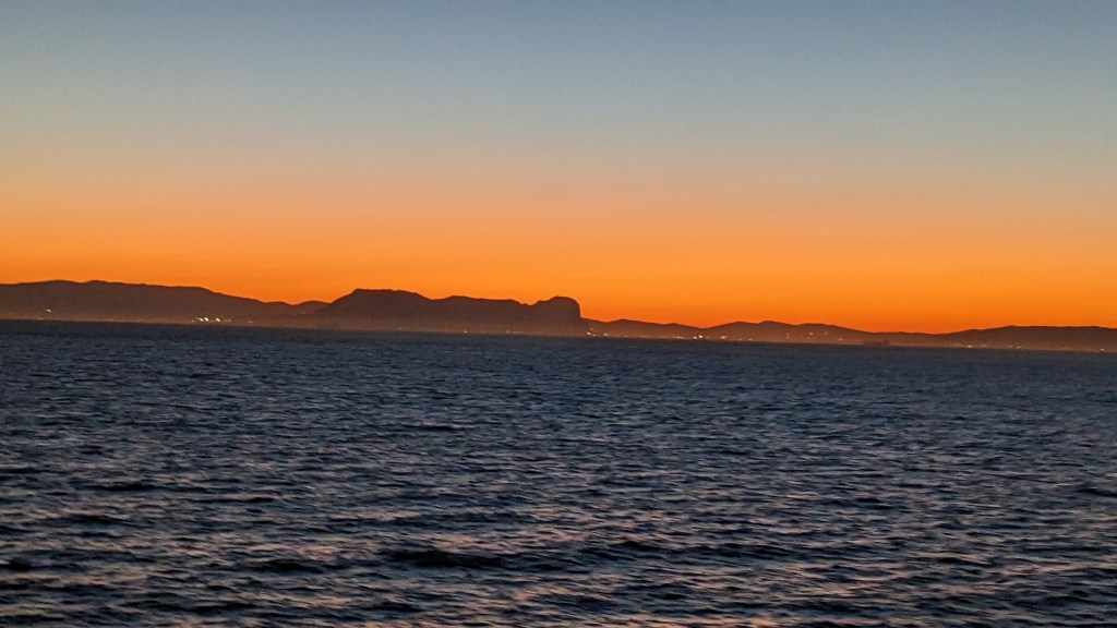 Last night when we left Malaga, Spain sailing towards Casablanca, we went through the Staight of Gibraltar right passed the Rock of Gilbraltar.