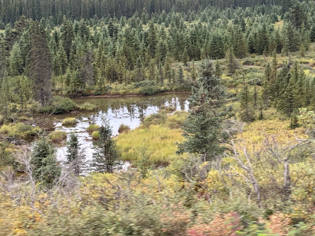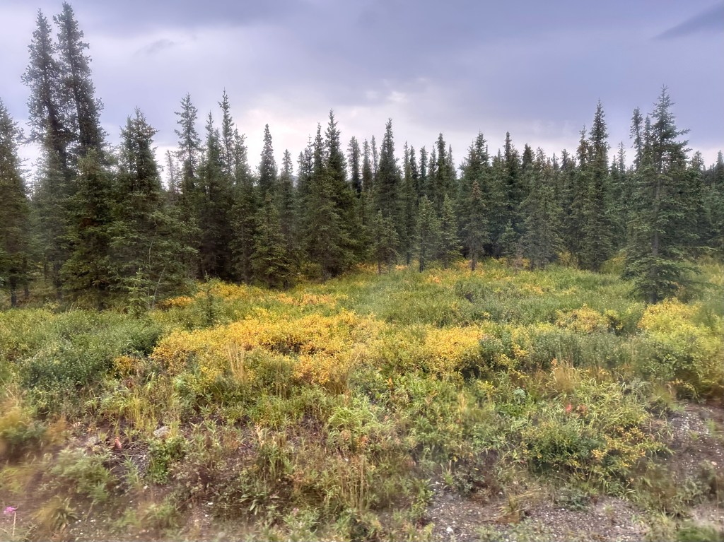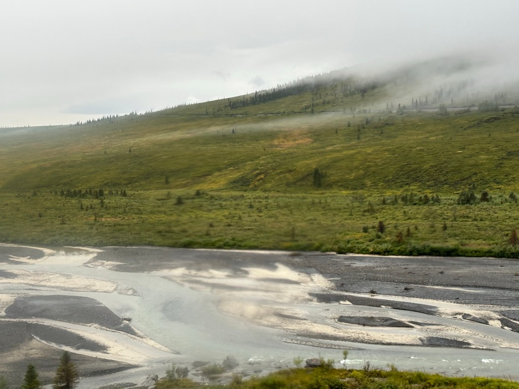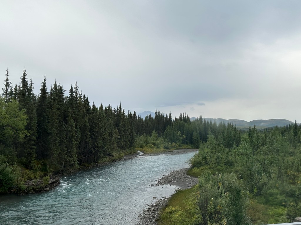 Toured through Denali on a former school bus! However, the seats were upgraded and there was heat! Our guide, Glen, was amazing. We had a great time seeing bears, moose, and caribou among other animals. It only rained a tiny bit as we started out.