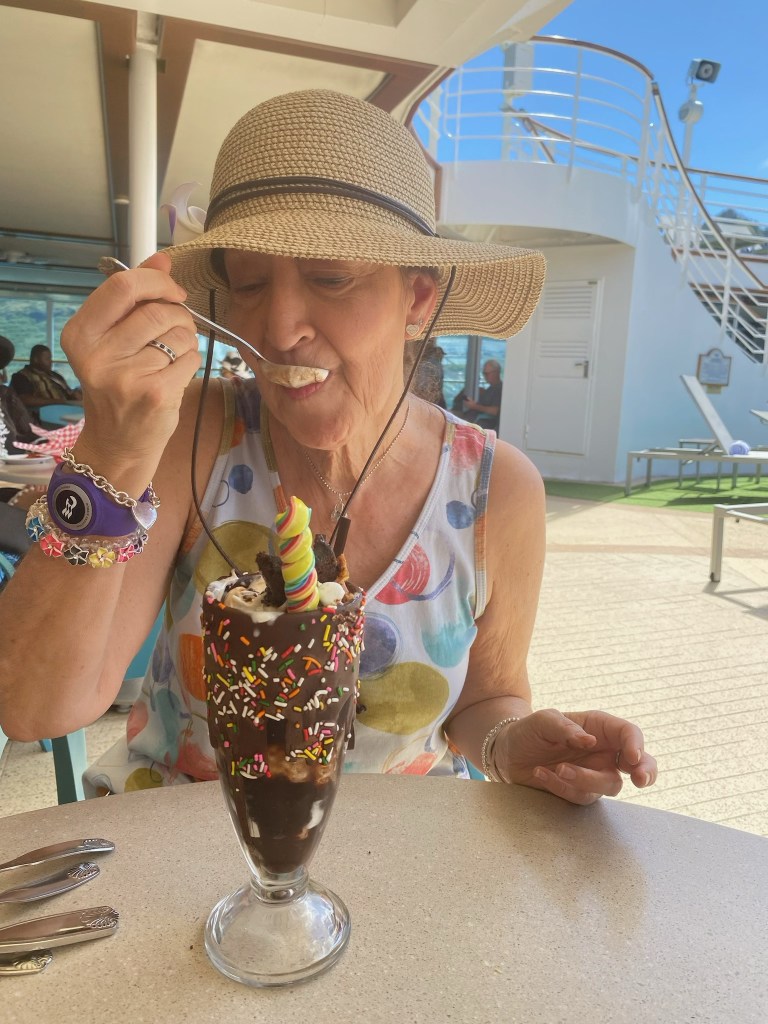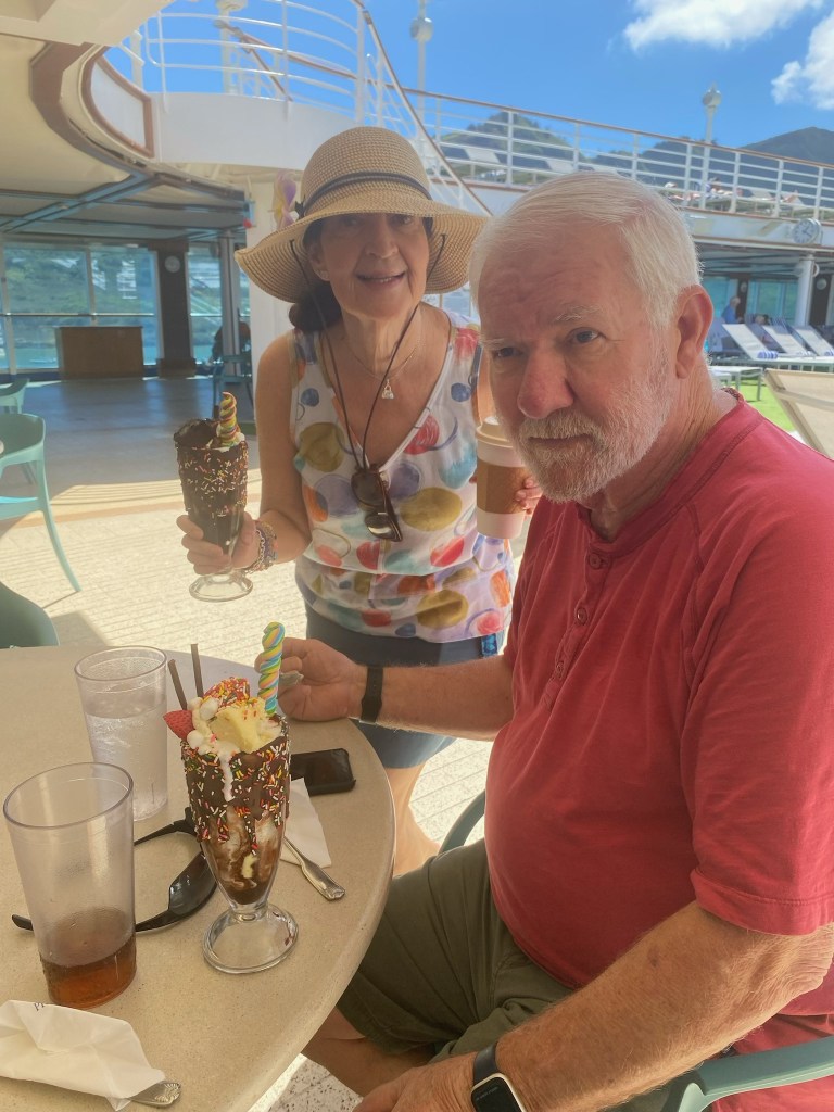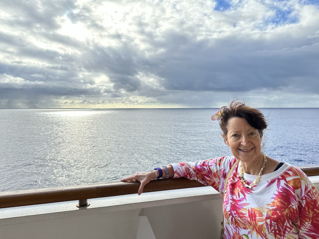 Refreshing mornings, relaxing afternoons, and enchanting evenings… Lei making, spa thermal suite, entertainment, Mahjjong, casino, first class dining, nightlife, pools, fancy desserts, cocktails, trivia, & chilling on our balcony! Yes, it’s a hard life but someone has to live it!