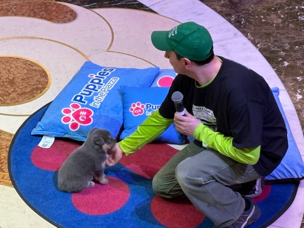 Puppies in the Piazza! Courtesy of Redington Mushing. Why yes he (wearing the green cap) has won the Iditarod race.