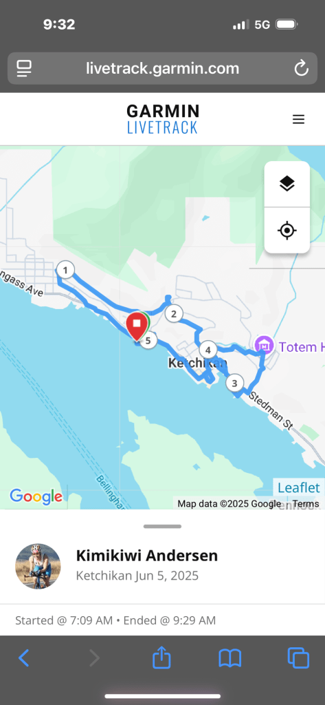 5 June 2025 Ketchikan! Kimi and Anton went to the Lumberjack show! Terry & Robbin stayed onboard, out of the rain! Kimi managed to get her 3 mile run done in the morning!