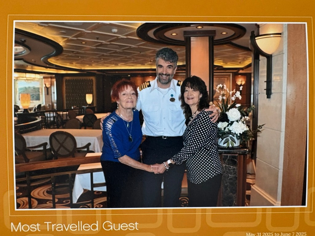 Robbin got invited to the Most Traveled Guest Luncheon for the first time! Usually Barry gets invited & Robbin is his guest! Robbin has a total of 321 sea days including this cruise. Robbin and her guest, her mom, had a lovely luncheon.