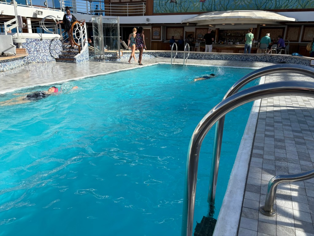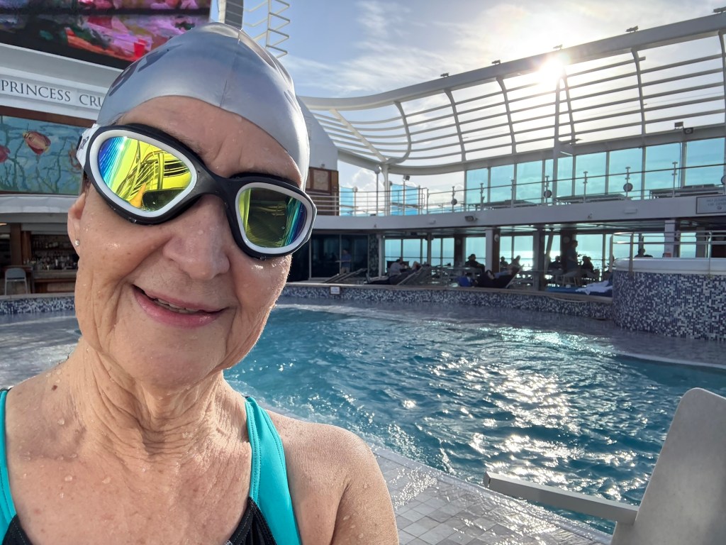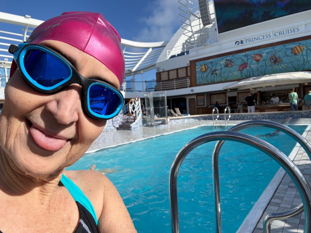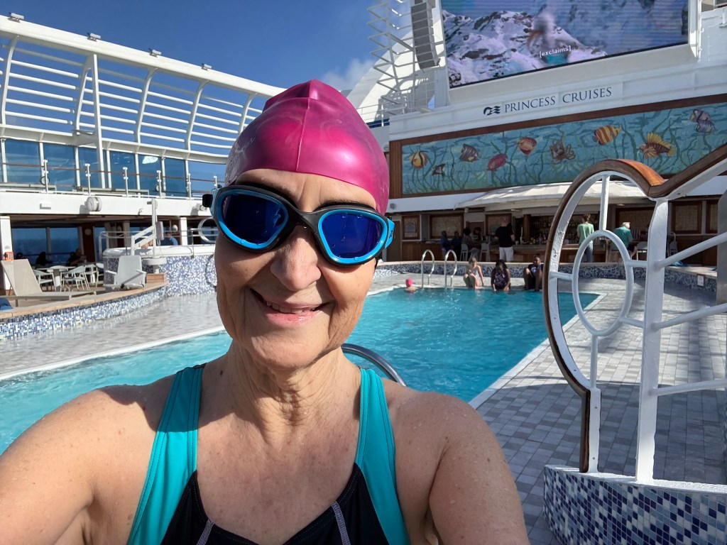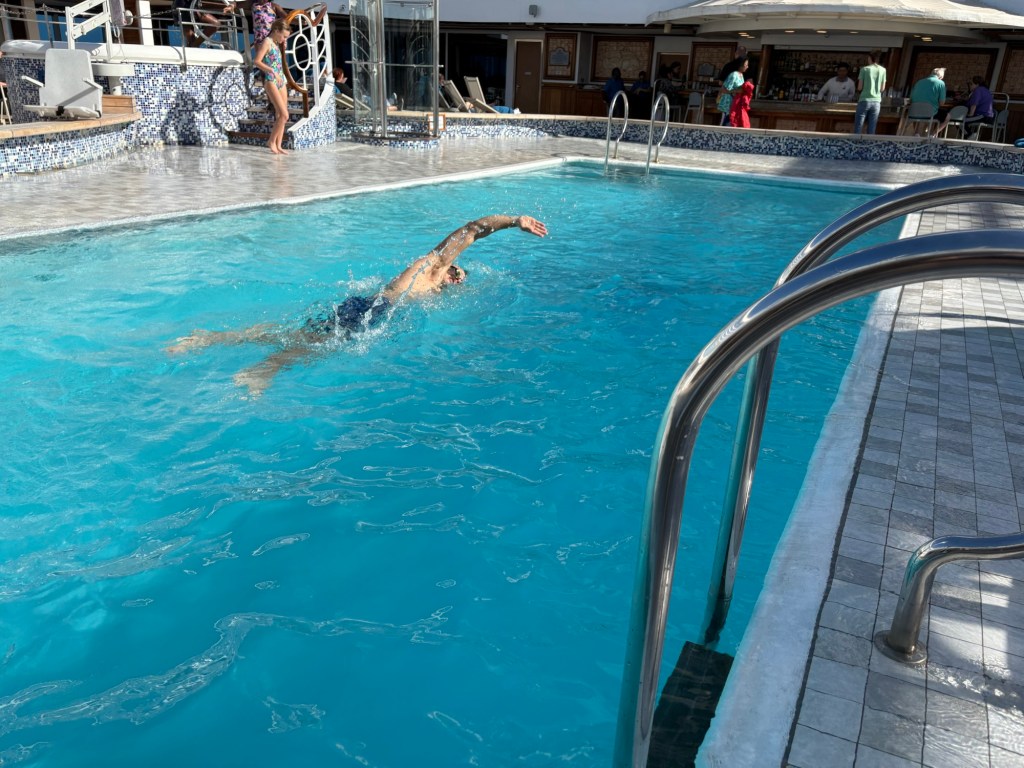 Today is Day 5 and Robbin was finally able to do freestyle swimming. Hooray! 🏊♀️🏊♀️🏊♀️ Don’t know if the distance tracked was accurate but it was wonderful to be back in a pool. Water did get a bit choppy halfway through. 😅🙄😜 Yes, we are at sea!