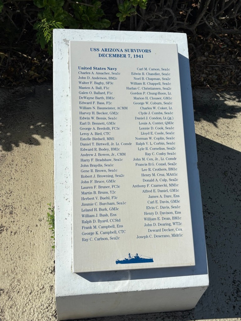 We visited Pearl Harbor National Memorial and the Ala Moana Center.